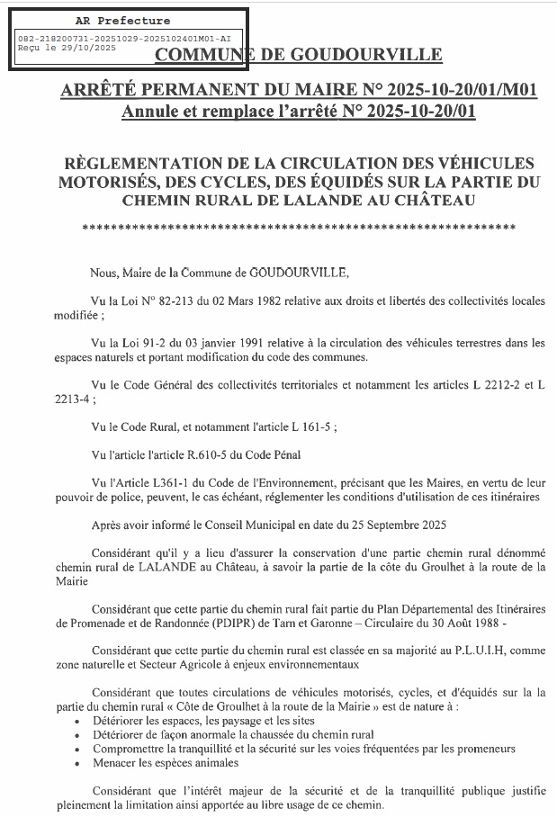 Arrêté Permanent 2025 10 20 01 M01 Circulation CR Lalande au Château