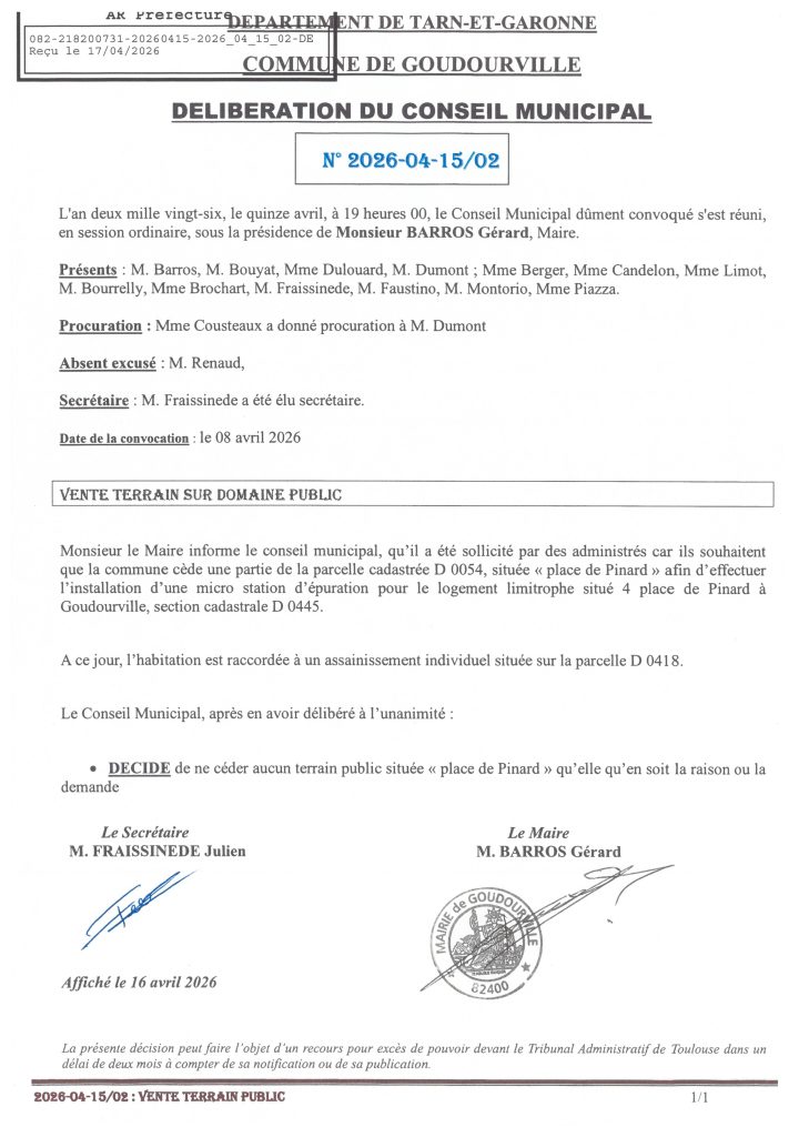 Compte rendu du Conseil Municipal du 20 mars 2026