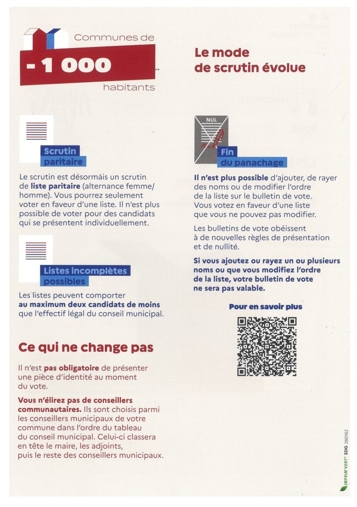 Elections municipales des 15 et 22 mars – Nouveau mode de scrutin (Communes – de 1 000 habitants)
