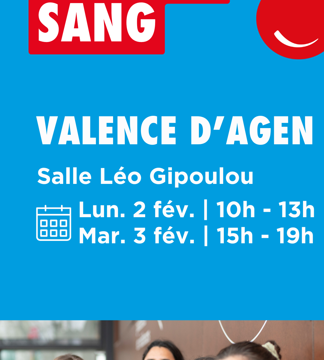 Don de sang 02 et 03 février 2026 – Valence d’agen